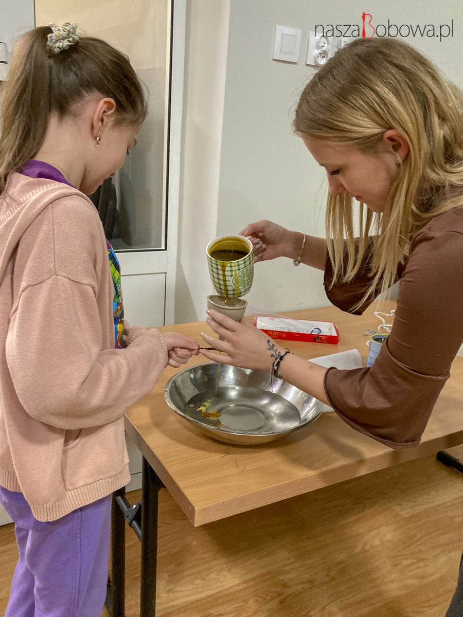 Ponadto odbyły się warsztaty z lania wosku podczas których, atmosfera była pełna twórczej energii i zaangażowania, a uczestnicy mieli okazję nie tylko rozwijać swoje umiejętności,