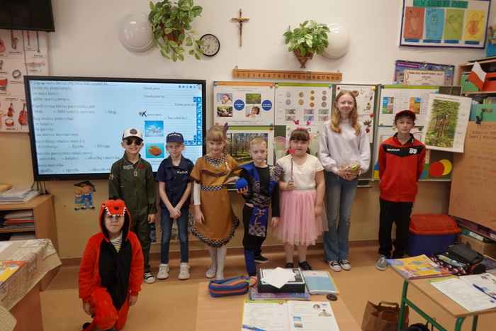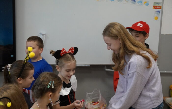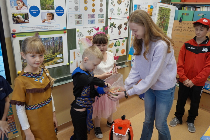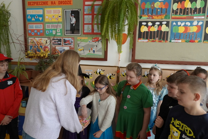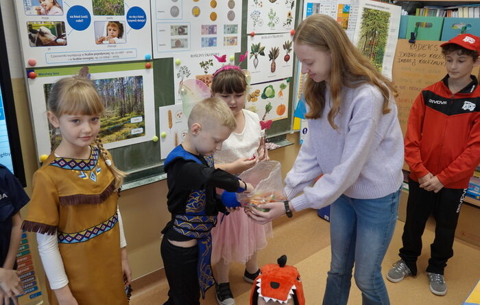 Wszyscy przebierańcy chętnie pozowali do wspólnych zdjęć, a za swój udział, kreatywność i piękne kostiumy zostali nagrodzeni słodyczami. Radość i duma na twarzach uczniów były najlepszym potwierdzeniem, że to święto ma wyjątkową moc.
