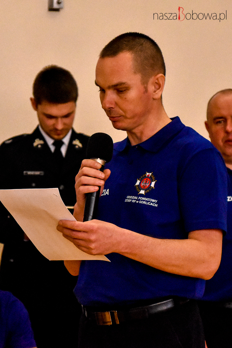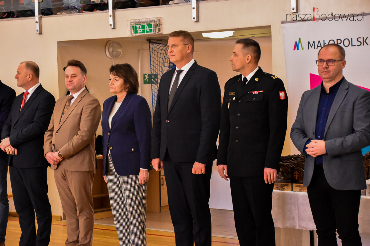 Sygnał do rozpoczęcia halowych zmagań MDP dał dh Maksymilian Dziedzic z Młodzieżowej Drużyny Pożarniczej OSP Siedliska składając meldunek Prezesowi Zarządu Oddziału Powiatowego ZOSP RP w Gorlicach dh Przemysławowi Wszołkowi. Następnie Prezes powitał licznie przybyłych a uroczystego otwarcia turnieju dokonał Burmistrz Miasta i Gminy Bobowa Marcin Wąs.