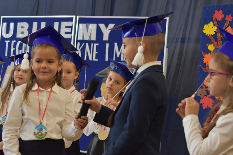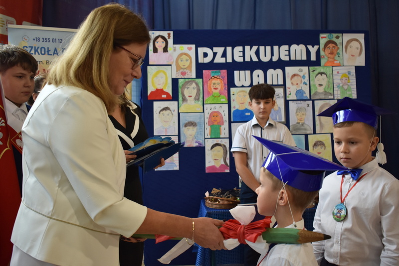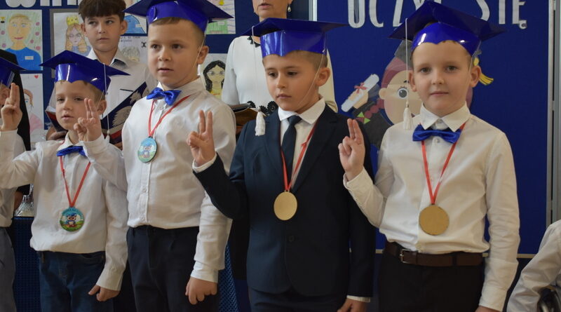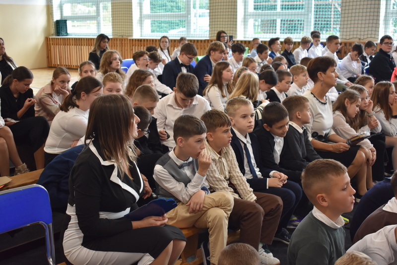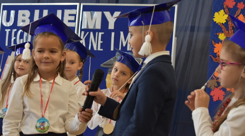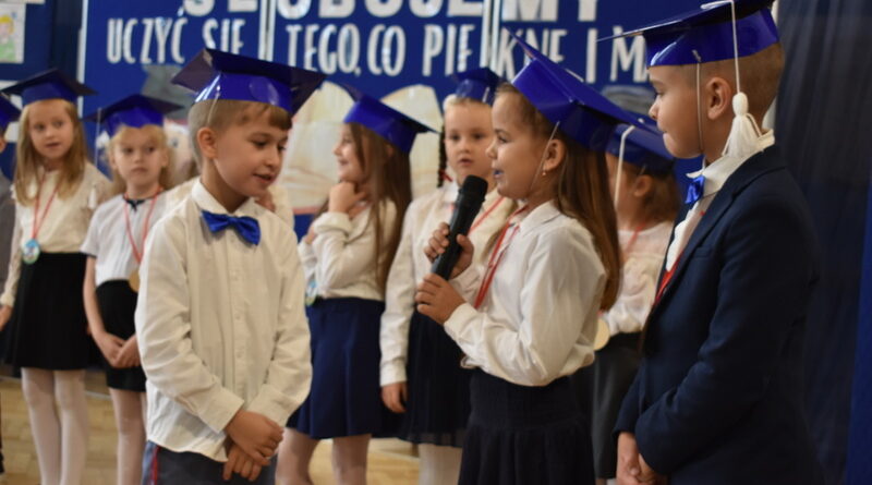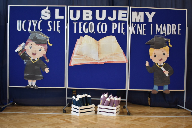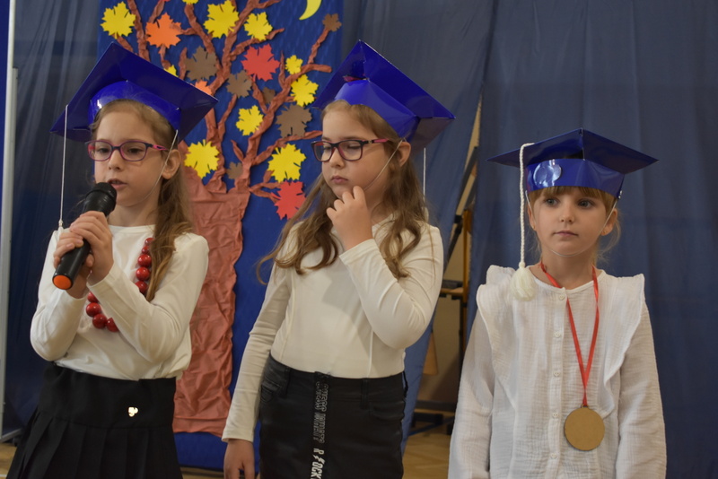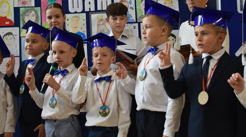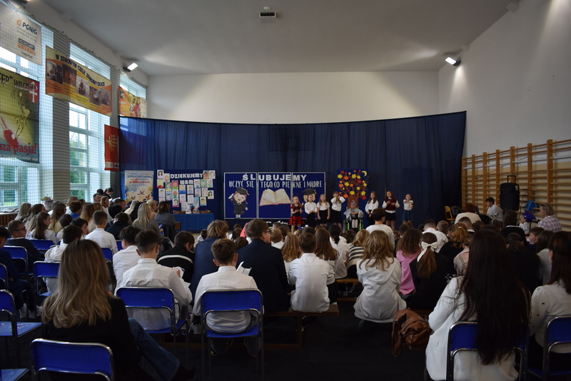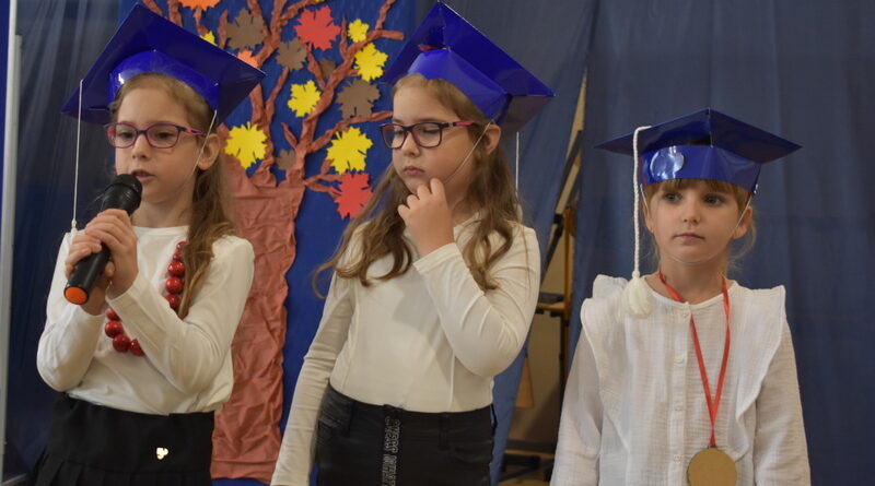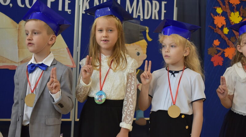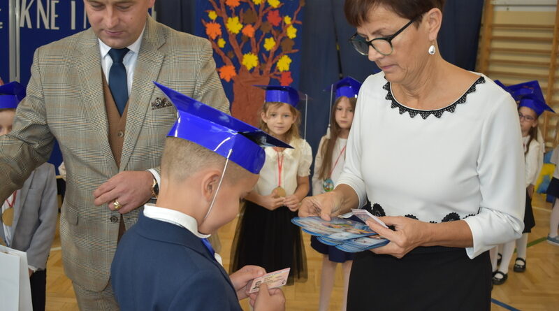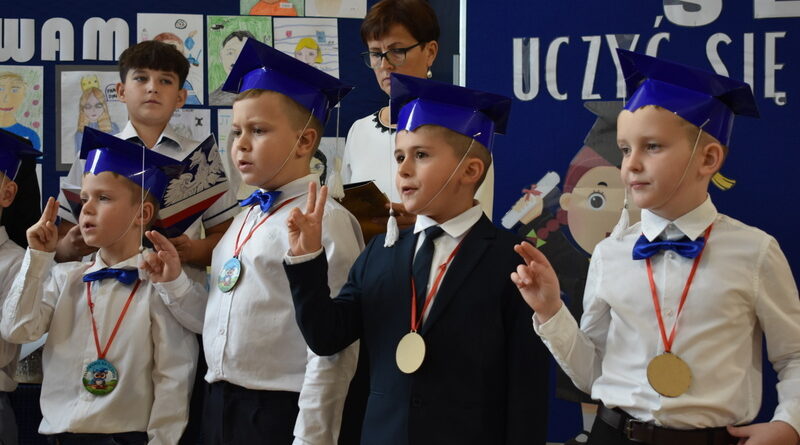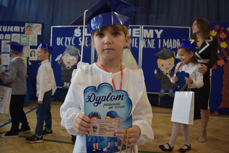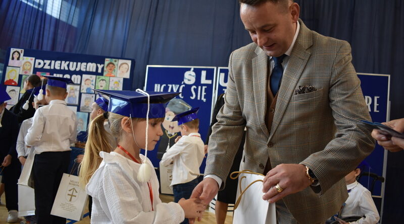 14 października 2025 roku w naszej szkole odbyła się niezwykle ważna uroczystość – ślubowania i pasowania uczniów klasy pierwszej. Mimo stresu związanego z pierwszym publicznym występem, dzieci doskonale sobie poradziły, prezentując wszystkim urozmaicony i ciekawy występ artystyczny. Udowodniły, że są gotowe, aby stać się stuprocentowymi uczniami.Pasowanie to jedno z najważniejszych wydarzeń w szkolnym życiu pierwszoklasisty. Od tego dnia każde dziecko czuje się już prawdziwym uczniem, czyli pełnoprawnym członkiem szkolnej rodziny. Uczniowie klasy pierwszej ślubowali być godnymi Polakami i wzorowymi uczniami. W ten sposób oficjalnie przyjęci zostali do grona uczniów naszej szkoły. Największym przeżyciem dla dzieci był moment pasowania. Pani Dyrektor poprzez dotknięcie ogromnym ołówkiem ramienia każdego dziecka zamieniała go w prawdziwego ucznia. Następnie Pan Burmistrz Marcin Wąs osobiście pogratulował i wręczył upominki każdemu pierwszoklasiście. Potem uczniowie klasy drugiej zaprezentowali swoim młodszym kolegom i koleżankom dobre rady wierszem mówione.