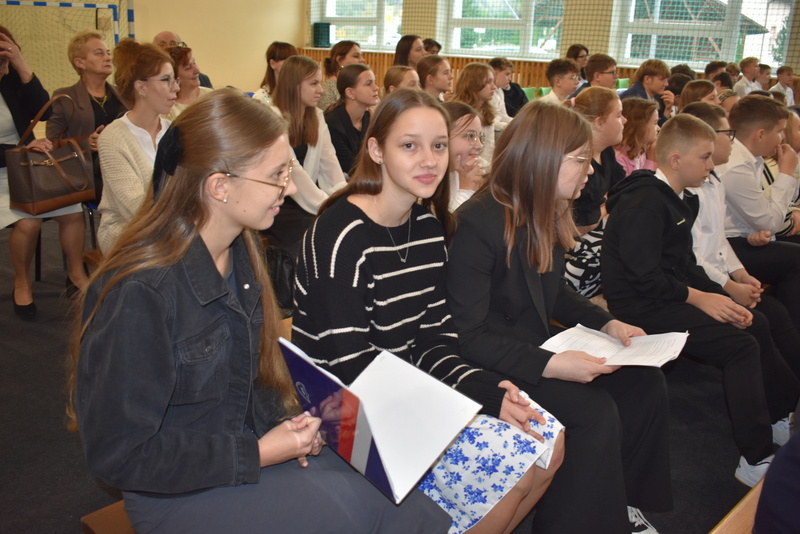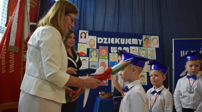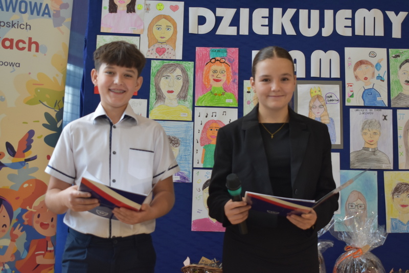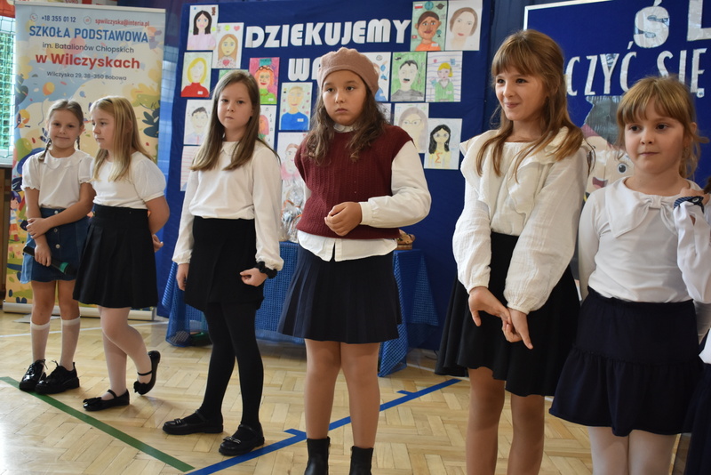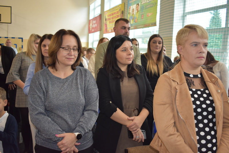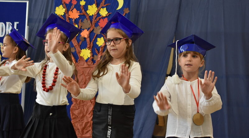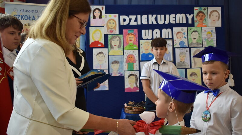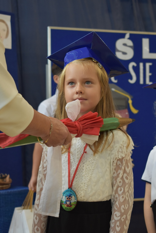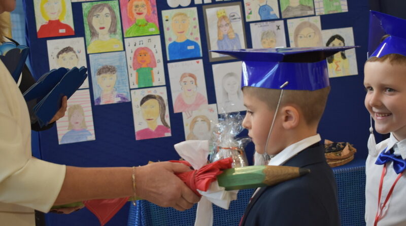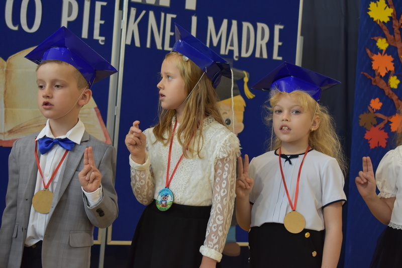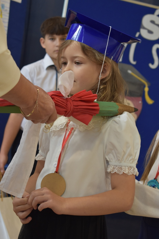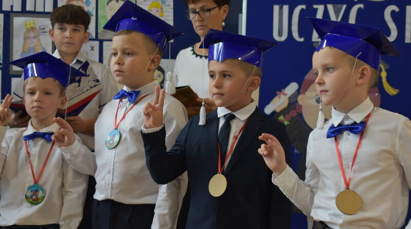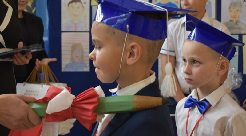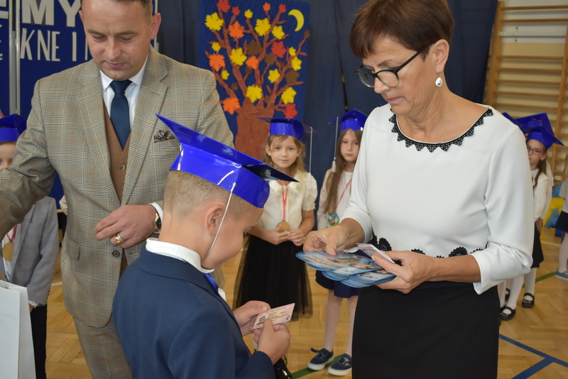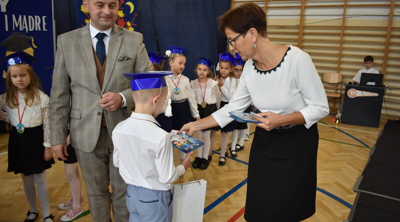 14 października 2025 roku w naszej szkole odbyła się niezwykle ważna uroczystość – ślubowania i pasowania uczniów klasy pierwszej. Mimo stresu związanego z pierwszym publicznym występem, dzieci doskonale sobie poradziły, prezentując wszystkim urozmaicony i ciekawy występ artystyczny. Udowodniły, że są gotowe, aby stać się stuprocentowymi uczniami.Pasowanie to jedno z najważniejszych wydarzeń w szkolnym życiu pierwszoklasisty. Od tego dnia każde dziecko czuje się już prawdziwym uczniem, czyli pełnoprawnym członkiem szkolnej rodziny. Uczniowie klasy pierwszej ślubowali być godnymi Polakami i wzorowymi uczniami. W ten sposób oficjalnie przyjęci zostali do grona uczniów naszej szkoły. Największym przeżyciem dla dzieci był moment pasowania. Pani Dyrektor poprzez dotknięcie ogromnym ołówkiem ramienia każdego dziecka zamieniała go w prawdziwego ucznia. Następnie Pan Burmistrz Marcin Wąs osobiście pogratulował i wręczył upominki każdemu pierwszoklasiście. Potem uczniowie klasy drugiej zaprezentowali swoim młodszym kolegom i koleżankom dobre rady wierszem mówione.
