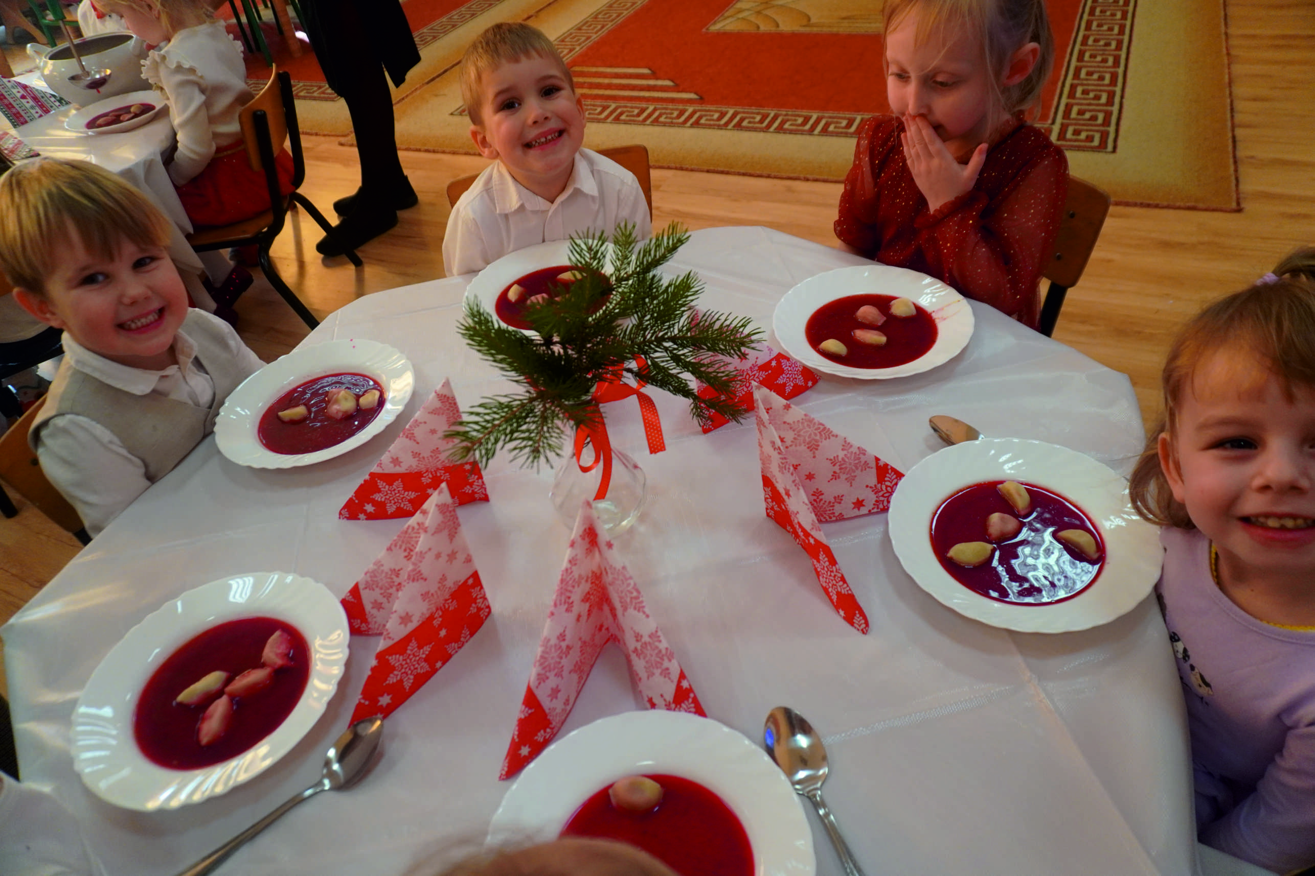 W tym dniu nie zabrakło świątecznych życzeń i łamania sia opłatkiem, wspólnego kolędowania oraz świątecznych potraw.