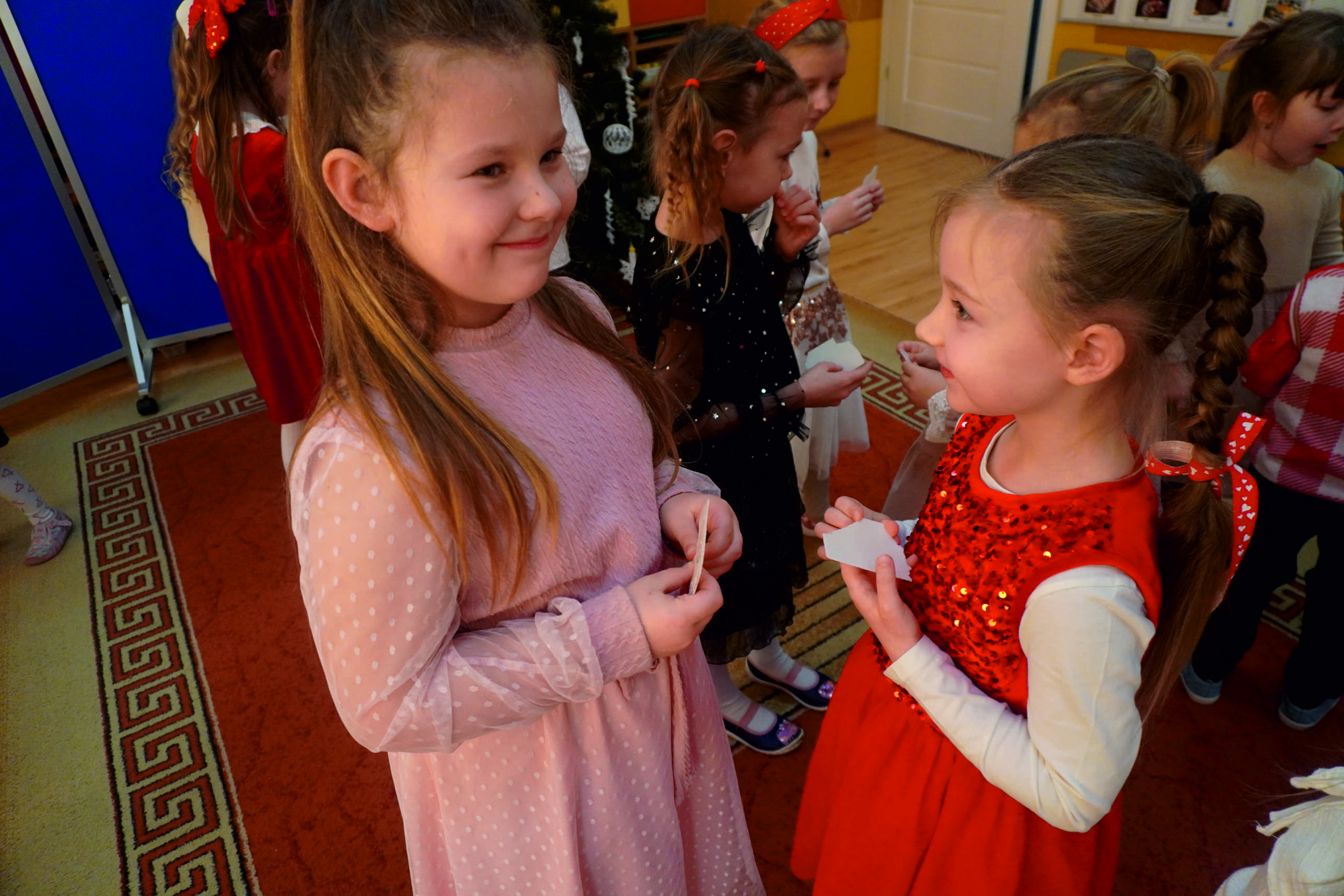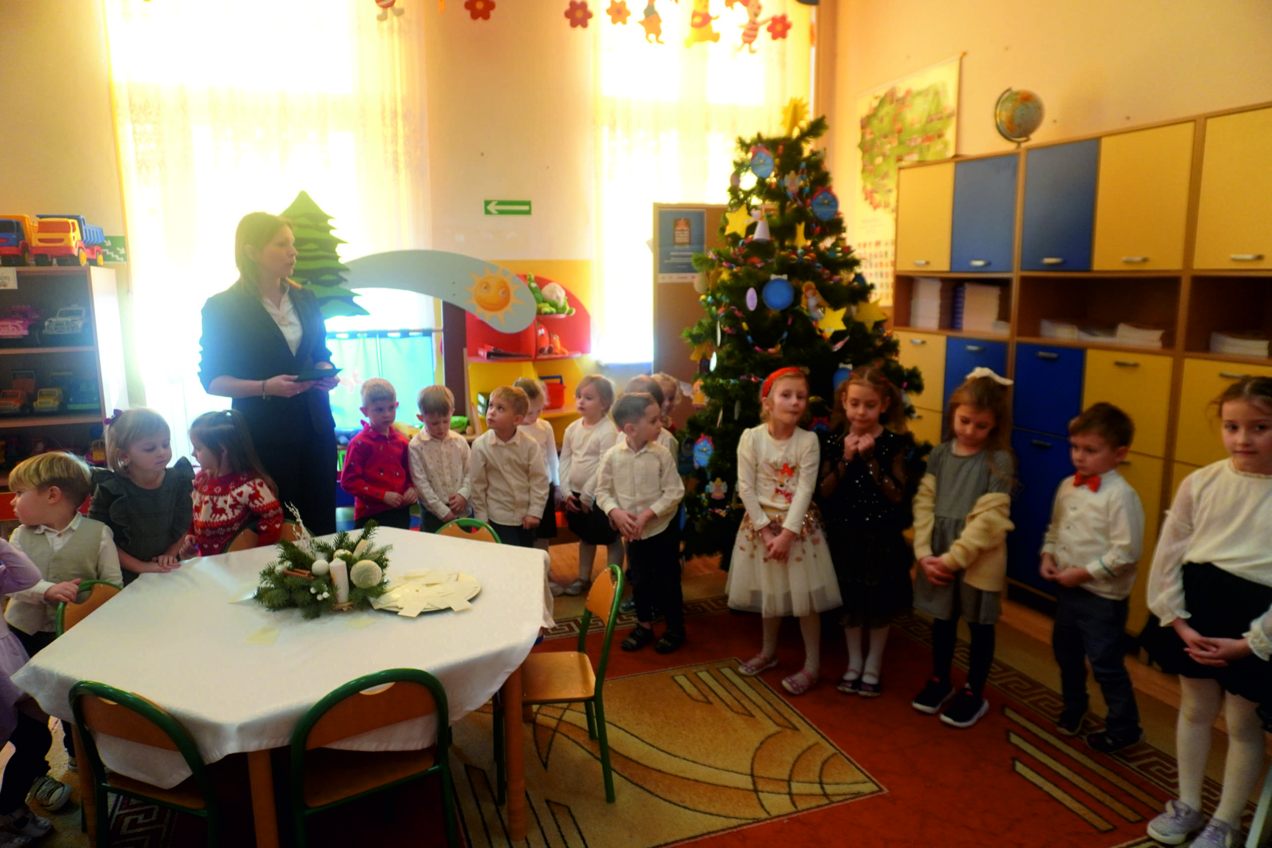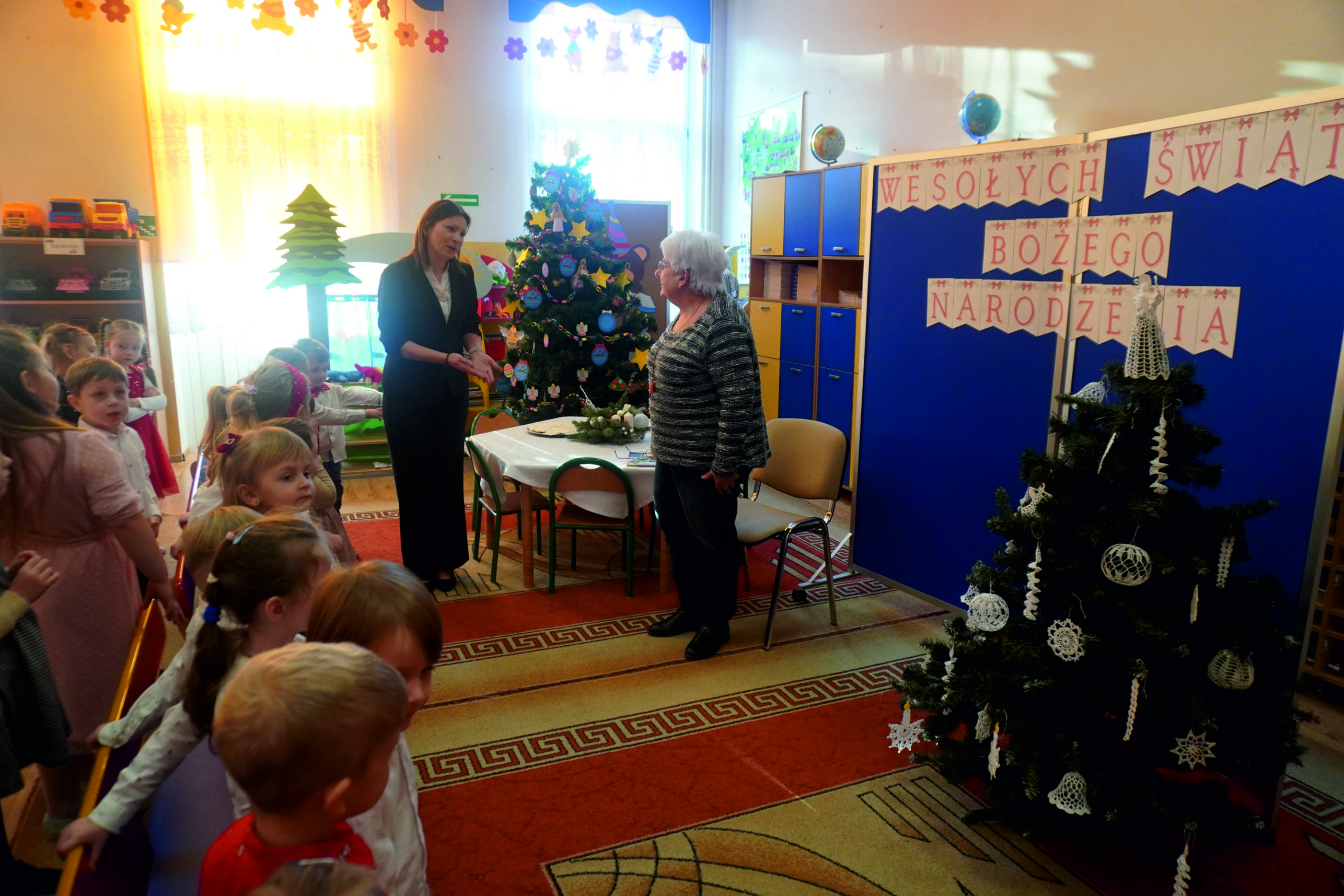 W salach i na korytarzach panowała świąteczna atmosfera… Choinki były pięknie przystrojone, a w powietrzu unosił się zapach pierniczków… Dzieci razem z nauczycielkami przygotowały dekoracje, które dodały spotkaniu uroku i ciepła.