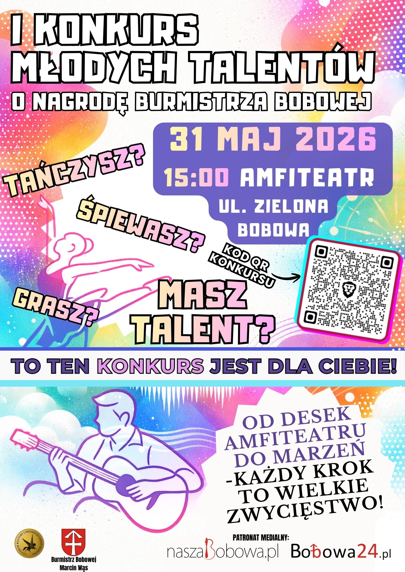Zachęcamy wszystkich młodych artystów do udziału, a mieszkańców do licznego przybycia i wspólnego kibicowania uczestnikom.