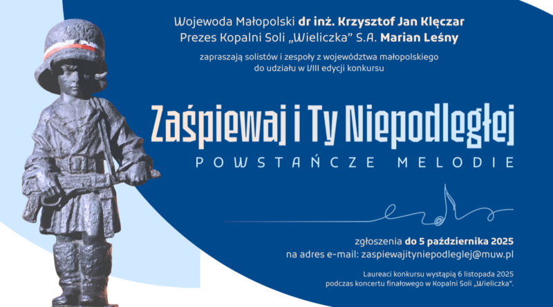 Informacje o konkursie można uzyskać na stronie internetowej: https://muw.pl/index.aspx?page=spiewaj, w Biurze Wojewody, tel. 12 39 21 119, 12 39 21 111 e-mail: zaspiewajityniepodleglej@malopolska.uw.gov.pl; oraz w Dziale Marketingu i Komunikacji Korporacyjnej Kopalni Soli „Wieliczka” S.A., tel. 12 278 73 82, e-mail: konkurs@kopalnia.pl.