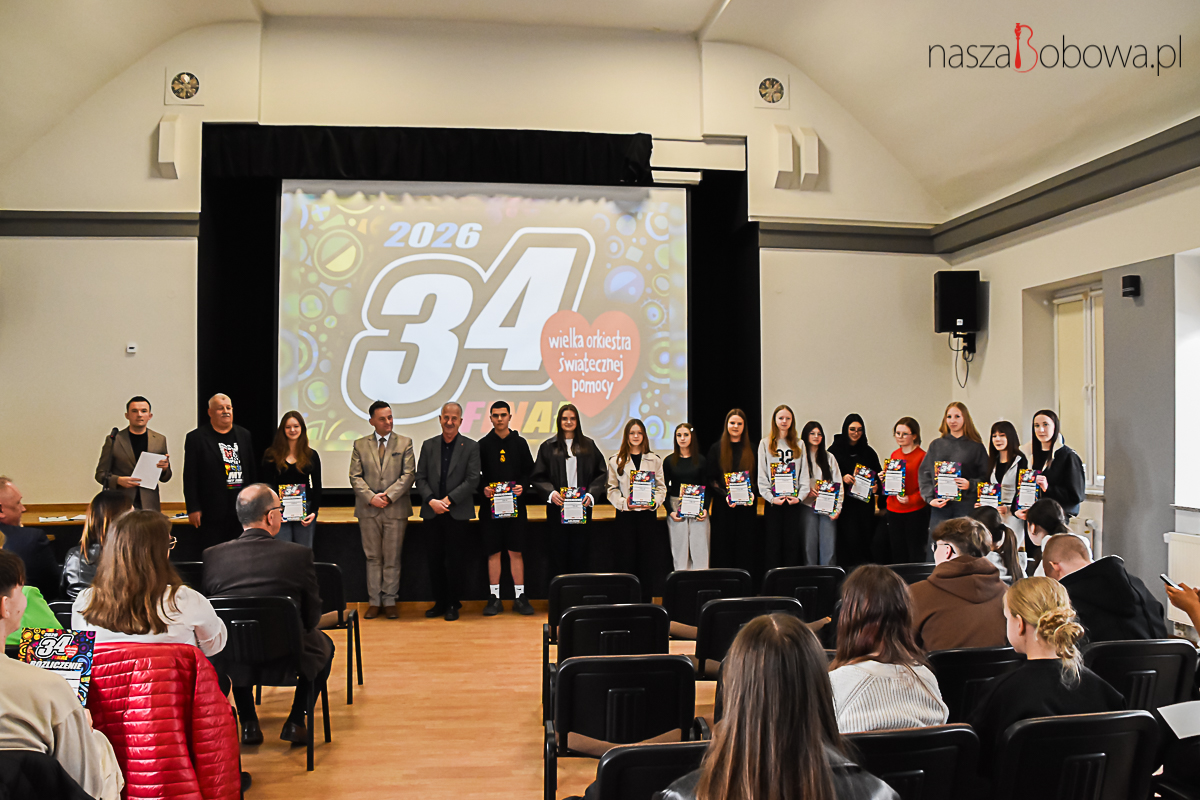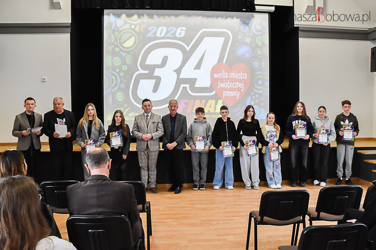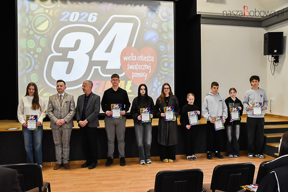 Podsumowanie akcji charytatywnej – Wielkiej Orkiestry Świątecznej Pomocy w Bobowej odbyło się 13 kwietnia 2026 r. w sali widowiskowej „Koronka”. Wydarzenie rozpoczął i prowadził Pan Adam Urbanek koordynator akcji WOŚP w Bobowej, natomiast podsumowanie całej akcji 34. finału przedstawił pan Dariusz Włodarz. W spotkaniu wzięli udział: pan Marcin Wąs Burmistrz Bobowej, pan Bogdan Krok Przewodniczący Rady Miejskiej w Bobowej, koordynatorzy akcji, dyrektorzy szkół z terenu gminy Bobowa, wolontariusze i ich opiekunowie. Wszyscy wolontariusze kwestujący podczas 34. Finału WOŚP i osoby zaangażowane w akcję otrzymali podziękowania. Uczestnicy spotkania obejrzeli prezentację slajdów z 34. Finału Wielkiej Orkiestry Świątecznej Pomocy.