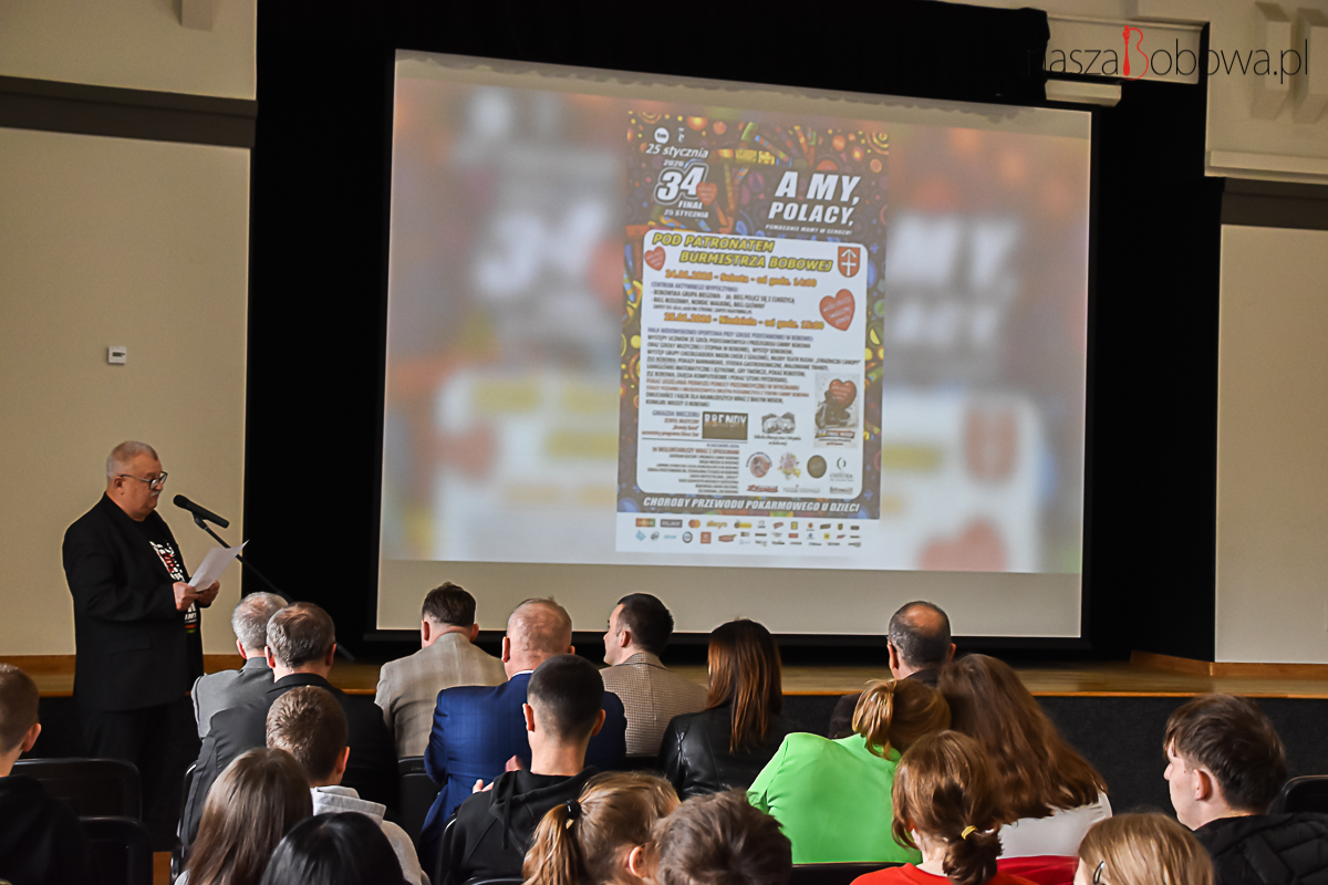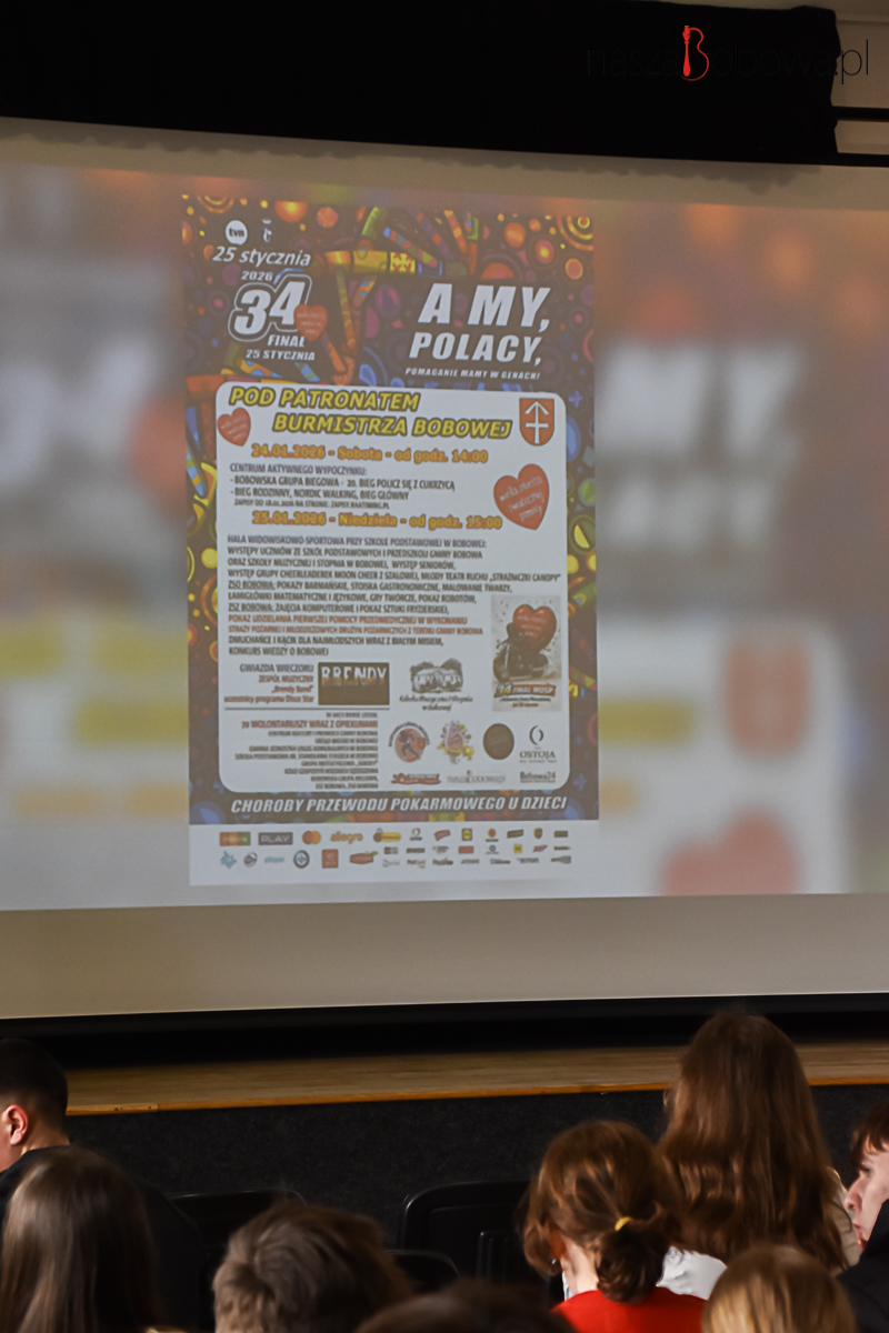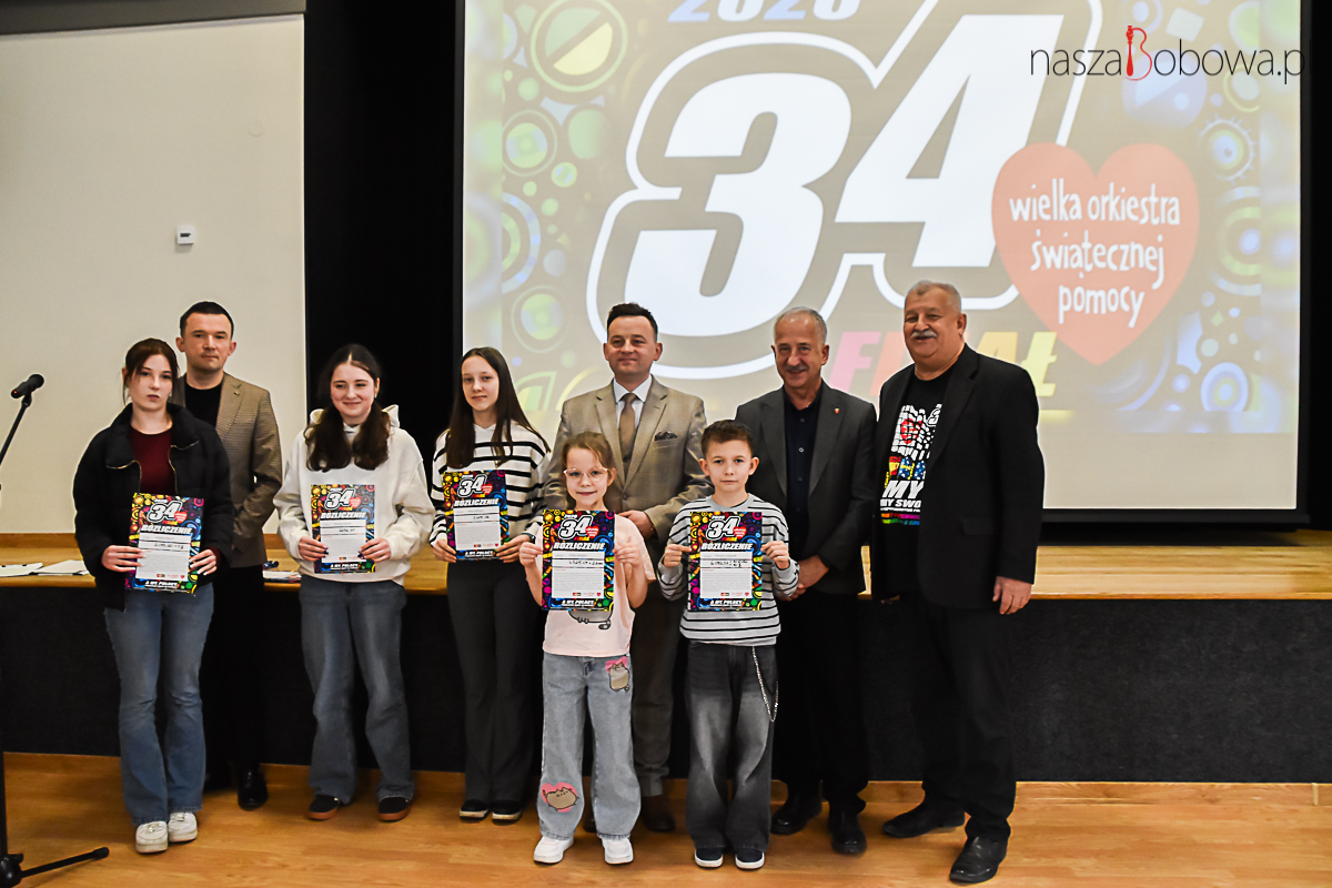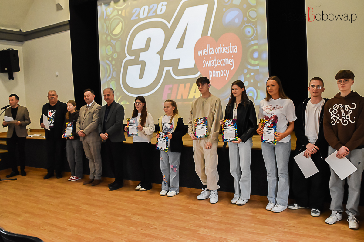 Podsumowanie akcji charytatywnej – Wielkiej Orkiestry Świątecznej Pomocy w Bobowej odbyło się 13 kwietnia 2026 r. w sali widowiskowej „Koronka”. Wydarzenie rozpoczął i prowadził Pan Adam Urbanek koordynator akcji WOŚP w Bobowej, natomiast podsumowanie całej akcji 34. finału przedstawił pan Dariusz Włodarz. W spotkaniu wzięli udział: pan Marcin Wąs Burmistrz Bobowej, pan Bogdan Krok Przewodniczący Rady Miejskiej w Bobowej, koordynatorzy akcji, dyrektorzy szkół z terenu gminy Bobowa, wolontariusze i ich opiekunowie. Wszyscy wolontariusze kwestujący podczas 34. Finału WOŚP i osoby zaangażowane w akcję otrzymali podziękowania. Uczestnicy spotkania obejrzeli prezentację slajdów z 34. Finału Wielkiej Orkiestry Świątecznej Pomocy.