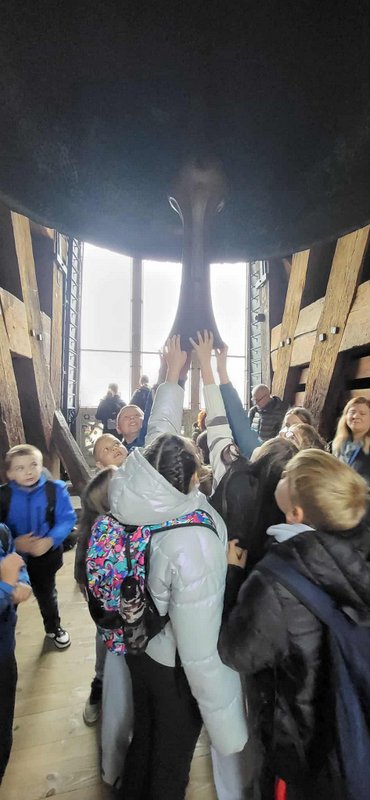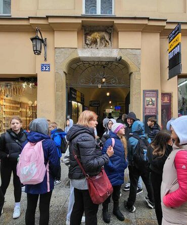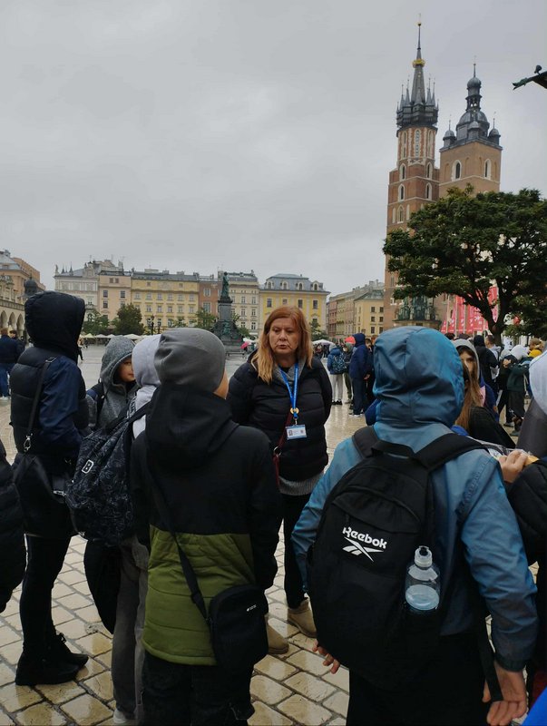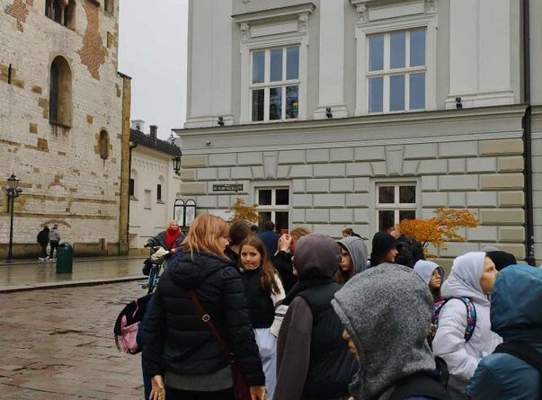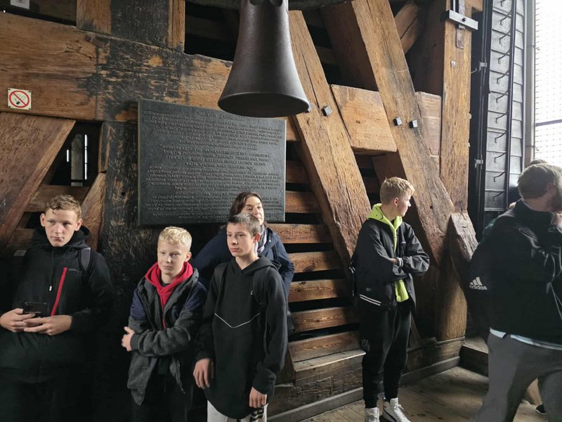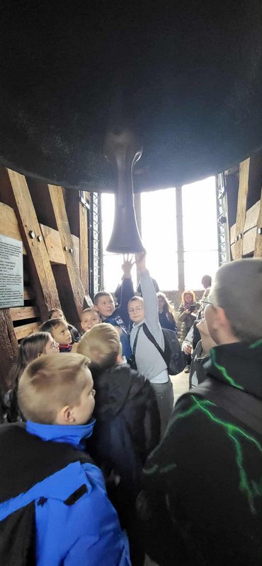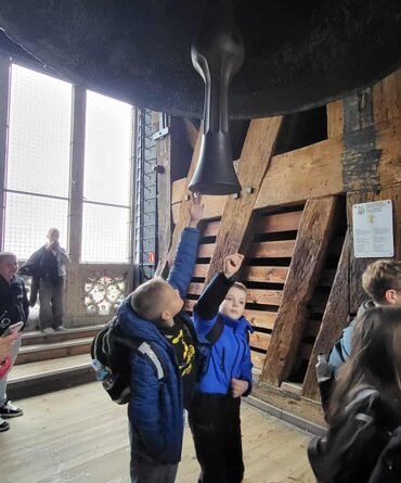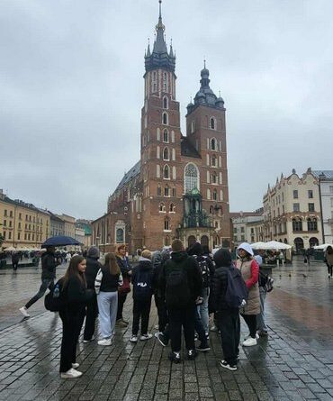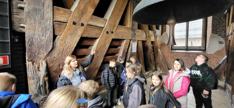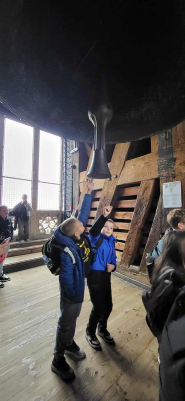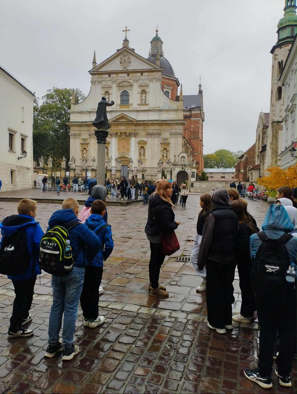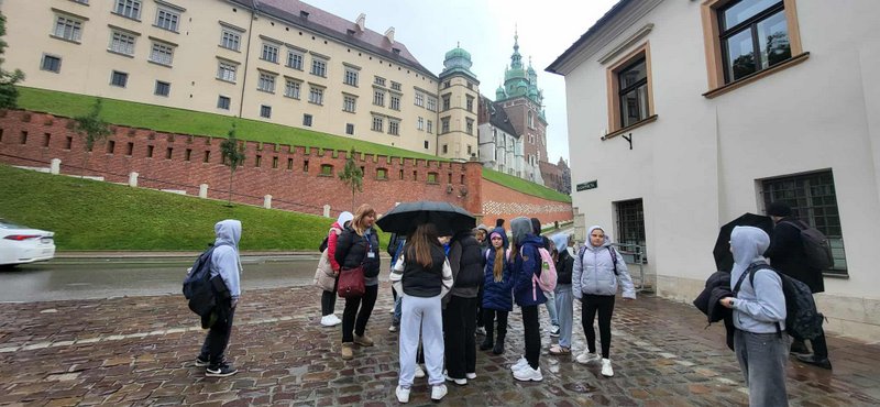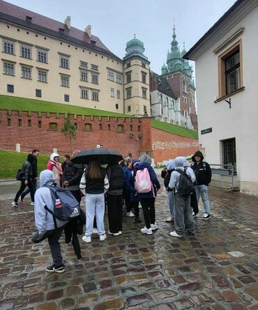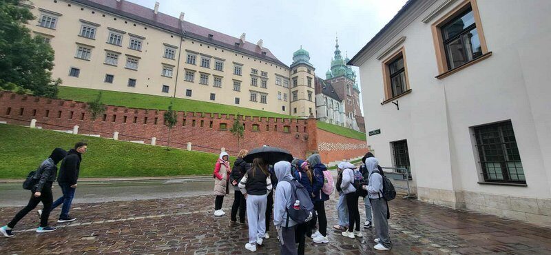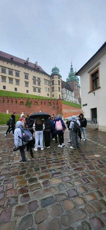 Swoją przygodę w Krakowie rozpoczęliśmy od Wzgórza Wawelskiego, gdzie uczniowie mieli okazję zwiedzić Katedrę Wawelską – miejsce koronacji i spoczynku polskich królów. Duże wrażenie wywarł na wszystkich Dzwon Zygmunta, którego potężny dźwięk i historia budzą podziw do dziś.