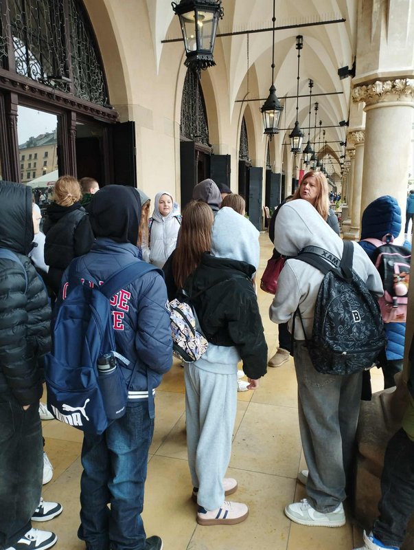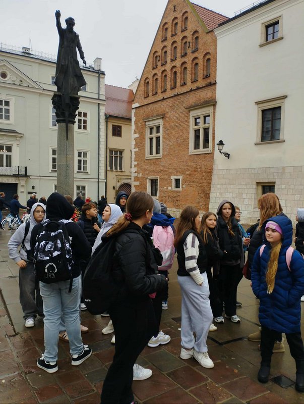 Następnie udaliśmy się na plac Matejki, gdzie uczniowie mogli podziwiać Pomnik Grunwaldzki oraz wysłuchać krótkiej historii o jednym z najważniejszych zwycięstw w dziejach Polski. Spacer po centrum Krakowa był doskonałą okazją, by poczuć niepowtarzalny klimat dawnej stolicy naszego kraju.